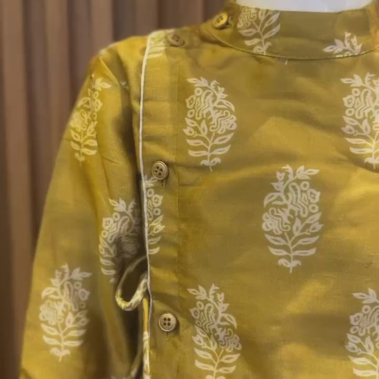 Golden Mustard Yellow Floral Booti Kurta Pyjama