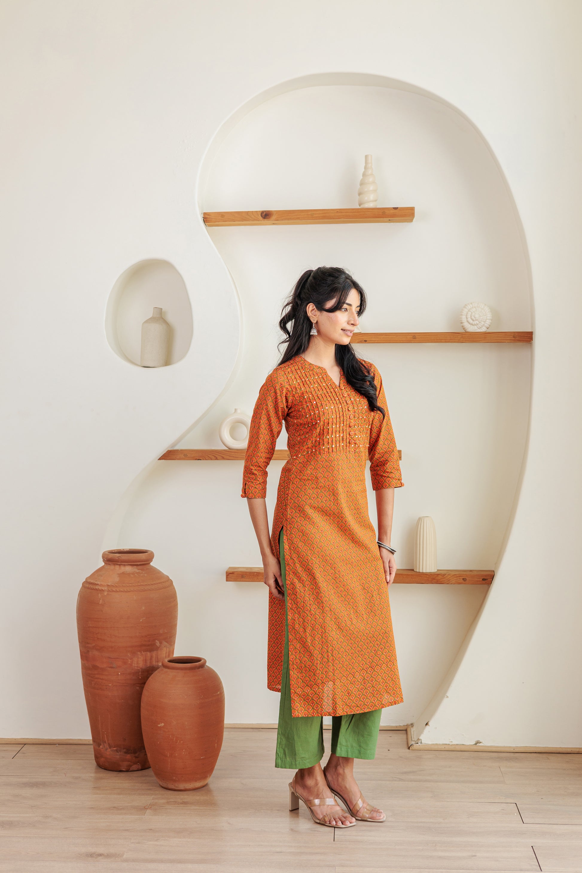 Mandarin Vamsam Kurti with Plazzo Pants Family
