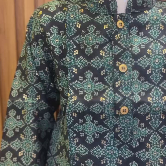 Navy Blue & Turquoise Printed Kurta Pajama