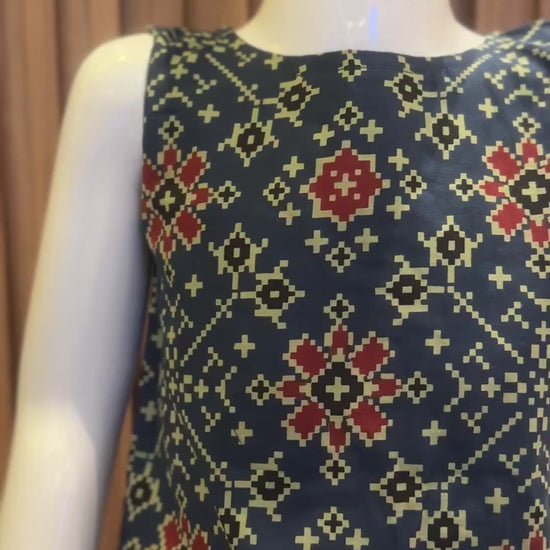 Navy Red Patola Top with Skirt