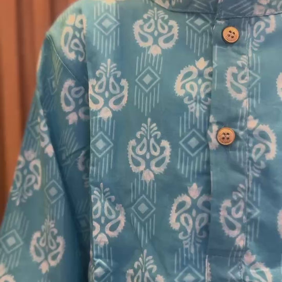 Sky Blue Ikat Print Kurta with Dhoti Set