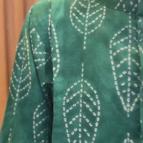 Teal Bandhani Leaf Print Kurta with Dhoti Set