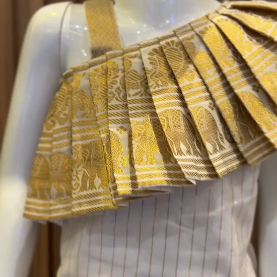 White & Gold Pleated Elephant Border Top and Striped Skirt